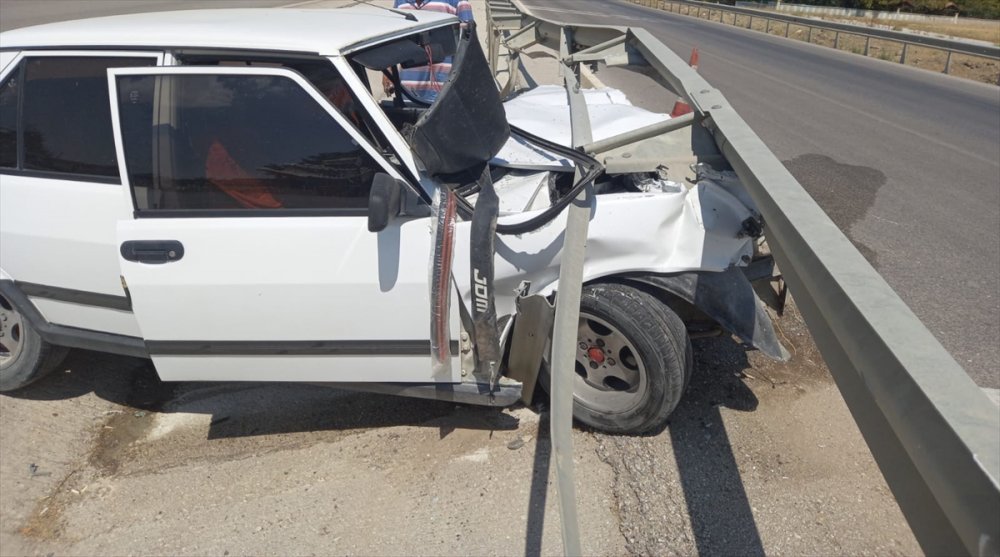 Konya'nın Kulu ilçesinde refüjdeki bariyerlere çarpan otomobil sürücüsü yaralandı.
