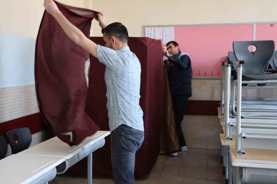 Konya'da sandık ve oy kullanma kabinleri yerleştirilen okullar, yarın yapılacak olan 31 Mart Mahalli İdareler Seçimlerine hazırlandı.