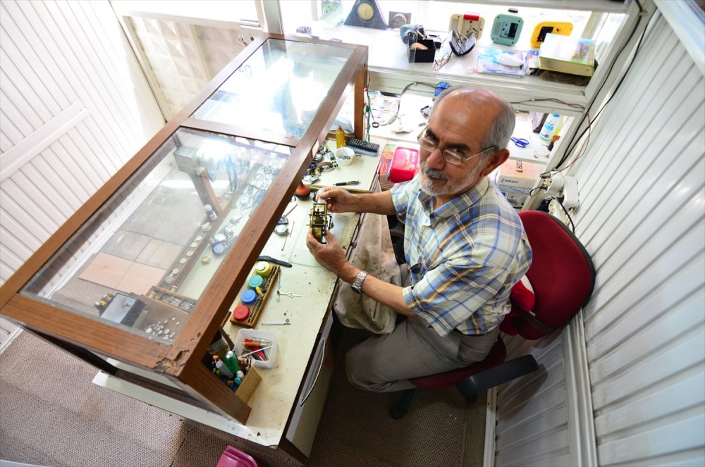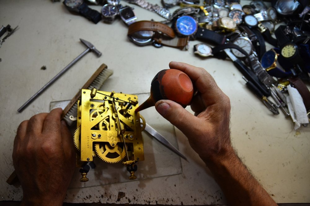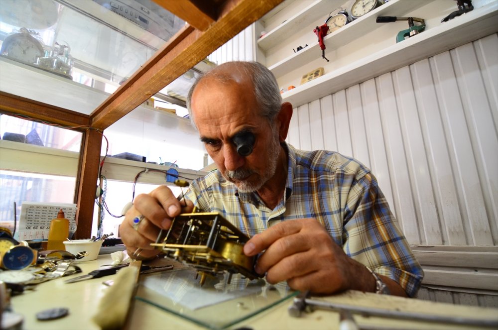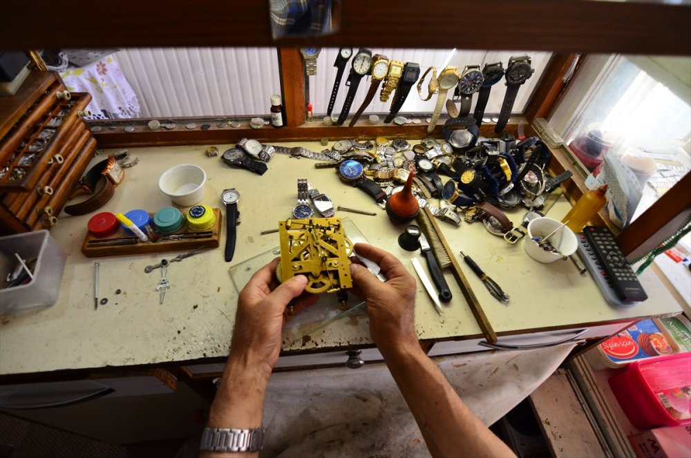 Kulcabay, AA muhabirine yaptığı açıklamada, çocukluğundan beri icra ettiği mesleğini ilk günkü aşka sürdürdüğünü belirterek, unutulmaya yüz tutan saat tamirciliğine devam ediyor.