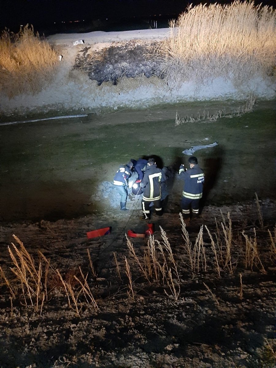 Konya'da sulama kanalında balçığa saplanan eşek, itfaiye ekiplerini uzun süre uğraştırdı.