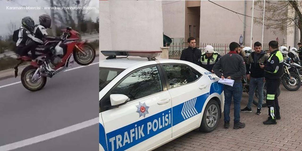 Edinilen bilgiye göre, dün sosyal medyada yayılan görüntülerde akrobatik hareket yapan ve trafik ekip otosunun yanından geçerken tek teker üzerinde giden sürücüleri yakalamak için Konya Trafik Şube Müdürlüğü ekipleri çalışma başlattı. Polis ekipleri çalışmalarının ardından 42 ABT 909 plakalı motosiklet sürücüsünün Abdullah Emre Özarıcı ve 42 FKN 96 plakalı motosikletin de sürücüsünün Emrah Şenal olduğunu tespit etti. Şahıslara ulaşan polis ekipleri sürücüleri Trafik Ekipler Amirliğine çağırdı. Gerekli cezai işlemlerin yapılması için Trafik Şubesine gelen Abdullah Emre Özarıcı'ya polis ekipleri sosyal medyadaki videoyu izlettirdi. Sürücü Özarıcı videodaki kişinin kendisi olduğunu kabul etti.