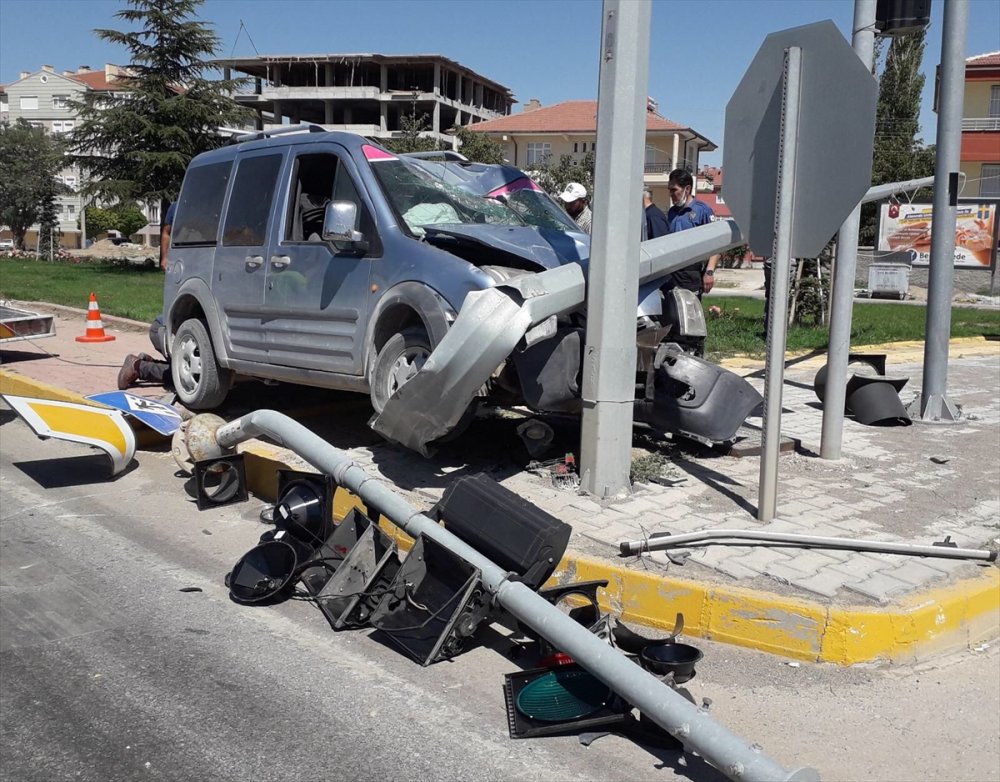 Ahmet Alptekin (22) idaresindeki 42 ADM 66 plakalı hafif ticari araç, Alparslan Mahallesi Kavşağında sürücüsünün direksiyon hakimiyetini kaybetmesi sonucu önce refüje çıkarak aydınlatma direğine, ardından trafik lambasına çarptı.