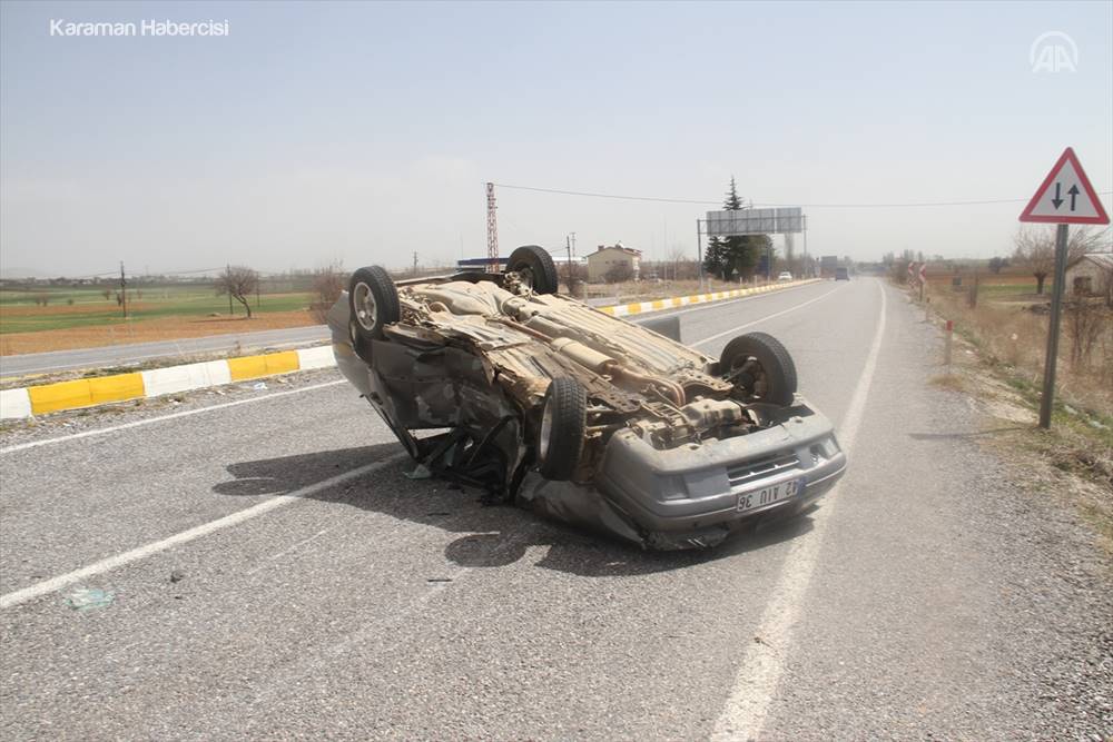 Kazada, 42 AIU 36 plakalı otomobil kavşakta devrilerek ters döndü.