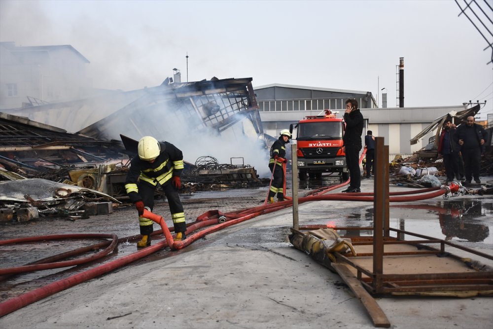 Zaman zaman patlamaların meydana geldiği yangın, yakındaki ambalaj fabrikasına da sıçradı ancak buradaki alevler büyümeden söndürüldü.