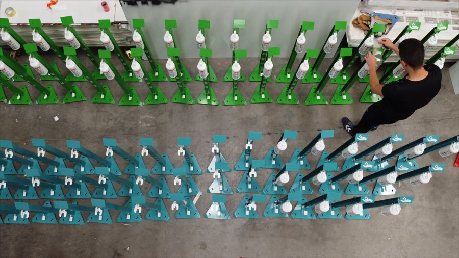 Konya'da bir firma tarafından üretilen pedallı dezenfektan standı, yurt dışına gönderilmeye başlandı.