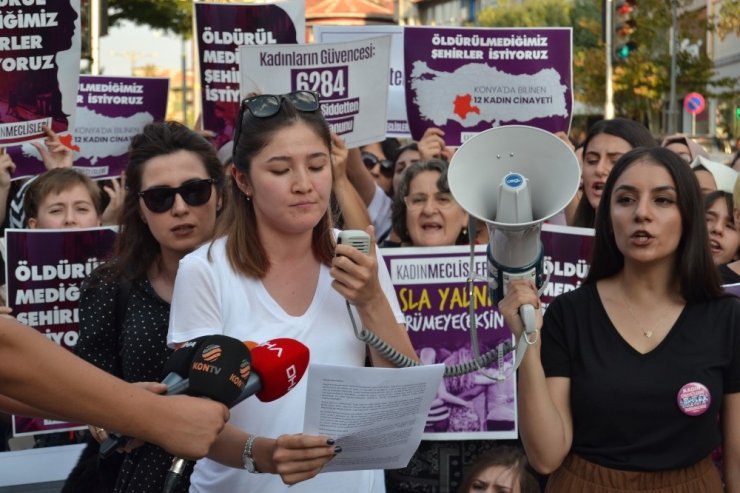 Konya'da Kadın Cinayetlerini Durduracağız Platformu ve Konya Kadın Meclisi tarafından düzenlenen programda Kırıkkale'de Emine Bulut ve Konya'da Tuba Erkol'un eşleri tarafından öldürülmesi ve kadına yönelik şiddet olayları protesto edildi.