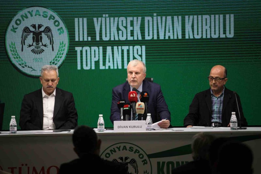 Konyaspor'da 3. Yüksek Divan Kurulu Toplantısı yapıldı. Konyaspor Stadyumu basın toplantısı salonunda düzenlenen toplantıda, tüzük gereği kulübün eski dönem başkanları, 10 yılı aşkın süredir üyelikleri devam eden genel kurulu üyeleri ve mevcut yönetim kurulu yer aldı. Yüksek Divan Kurulu Toplantısı daha önce 3 dönem kulüp başkanlığı yapan Ahmet Şan başkanlığında gerçekleşti. Yüksek Divan Kurulu Başkanı Ahmet Şan, Konyaspor'un geçtiği zor günleri hep birlikte atlatacaklarını ifade ederek, yapılacak olan olağan genel kurul öncesinden kulübe başarılar diledi.