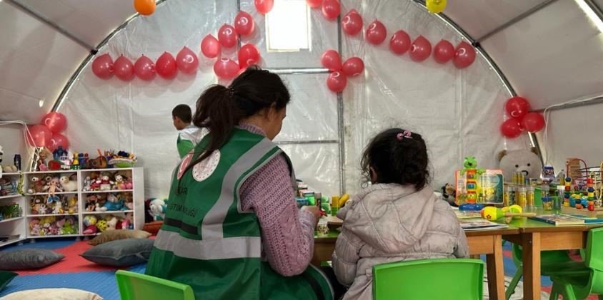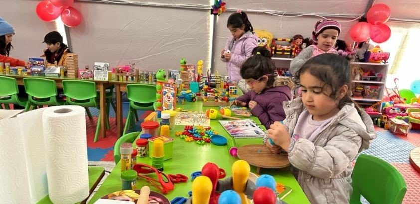Yapılan köy yaşam merkezinde özellikle okul öncesi eğitimin çok önemsendiğini belirten Özkaya, "Biz de depremzede vatandaşlarımızın okul öncesi çağındaki çocuklarını burada bu hizmetten mahrum kalmaması adına onlara burada gelişimlerine katkı sağlayacak birçok etkinlik ve faaliyeti gönüllü öğretmenler ve uzmanlar eşliğinde sunmaktayız" açıklamasında bulundu.