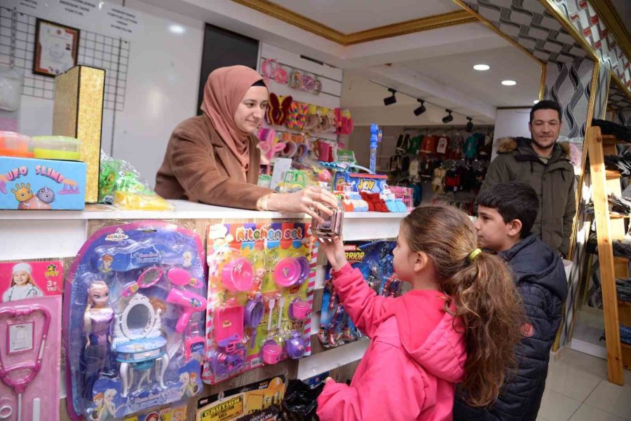 Berat ve Defne yaptıkları alışveriş sonrası aldıkları kıyafetleri depremzedelere ulaştırmak üzere Kahramankazan Belediyesi yetkililerine teslim ettiler.