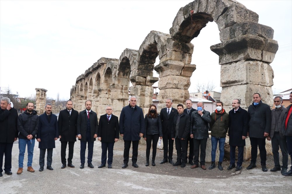 Bakan Ersoy daha sonra Kemerhisar beldesindeki Roma Havuzu, su kemerleri ile Tyana Antik Kenti'ni gezerek Aksaray Üniversitesi Arkeoloji Bölümü Öğretim Üyesi ve kazı heyeti başkanı Prof. Dr. Osman Doğanay'dan çalışmalar hakkında bilgi aldı.