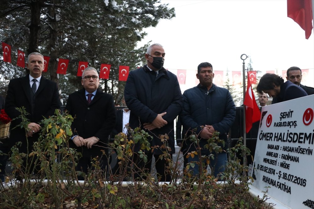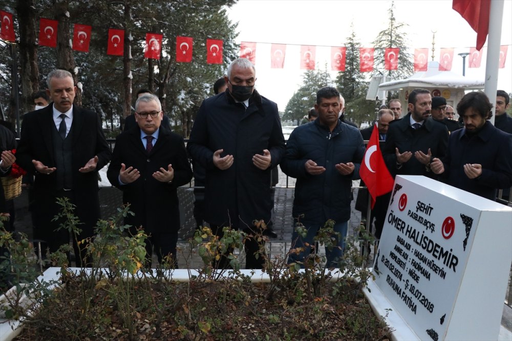Kültür ve Turizm Bakanı Mehmet Nuri Ersoy, FETÖ'nün darbe girişimi sırasında darbeci generali vurduktan sonra şehit edilen Astsubay Kıdemli Başçavuş Ömer Halisdemir'in Niğde'deki kabrine ziyarette bulundu.