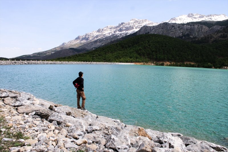 Konyanın Seydişehir ilçesinde bulunan Küpe Dağının kar suları ile dolan Baraj Gölü görenleri büyülüyor.