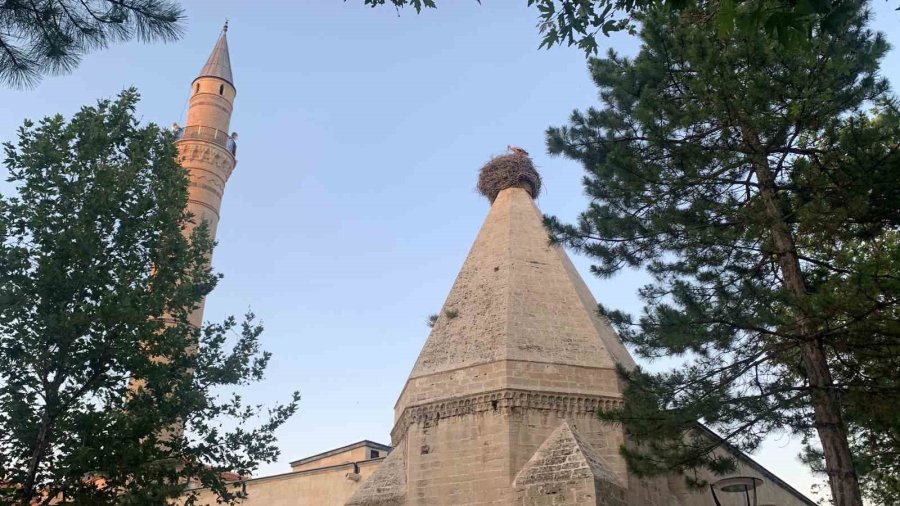 Leylekler Mesken Tuttukları Tarihi Kümbette Yavrularını Büyütüyor
