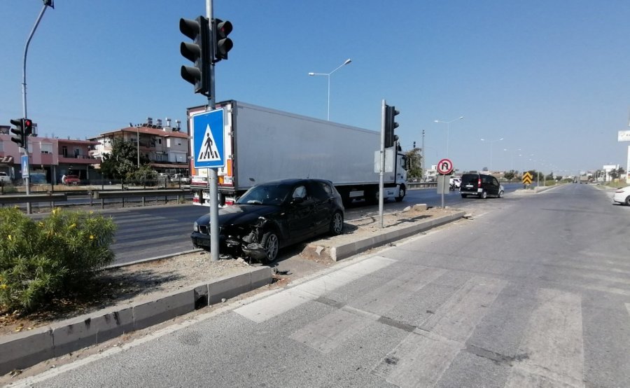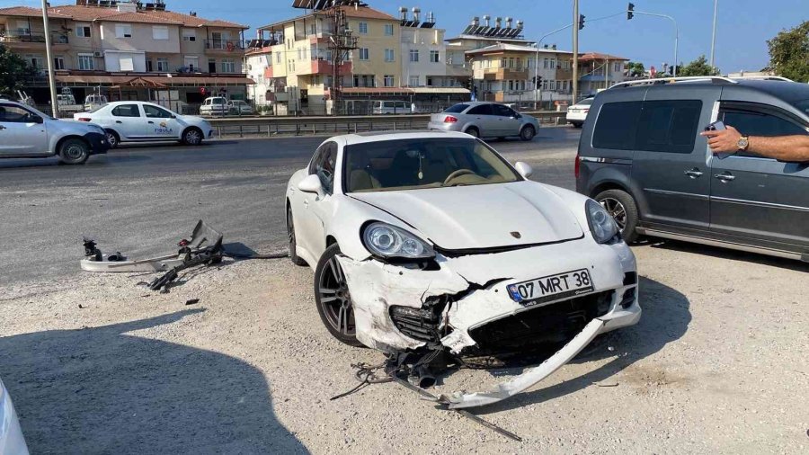 Antalya'nın Manavgat ilçesinde kavşakta lüks otomobillerin çarpışması sonucu meydana gelen trafik kazasında şans eseri 1 kişi hafif yaralandı.