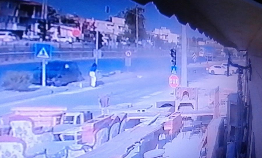 Antalya'nın Manavgat ilçesinde kavşakta lüks otomobillerin çarpışması sonucu meydana gelen trafik kazasında şans eseri 1 kişi hafif yaralandı. İş yerinin güvenlik kamerasına yansıyan kaza görüntülerinde, takla atmaktan son anda kurtulup refüjde kalan aracın sürücüsünün araçtan çıkma anı, yaşanan panik ve yardıma koşanlar yer aldı.