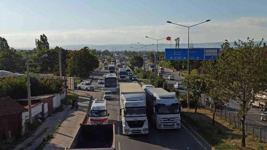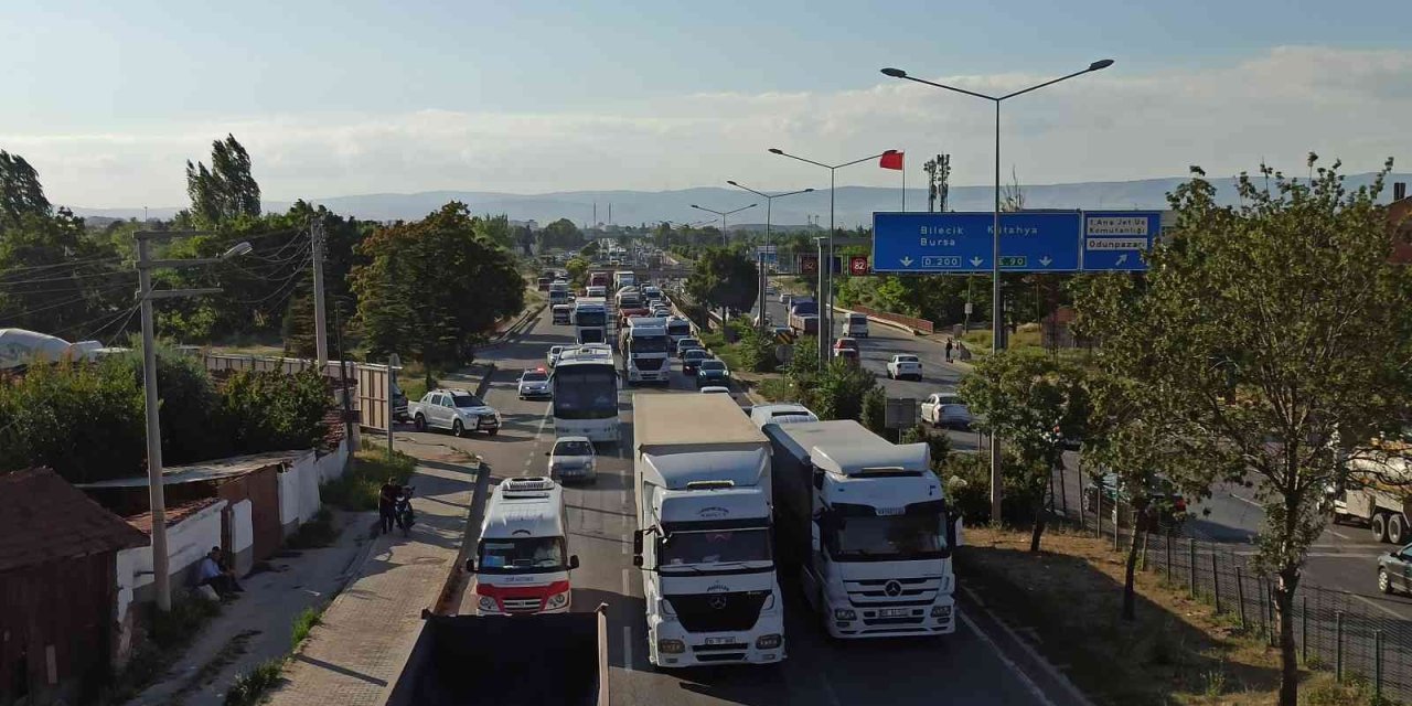 Eskişehir'de iki otomobilin ve bir tırın karıştığı maddi hasarlı trafik kazası Çevre Yolu'nda trafiği adeta kilitledi. Yolda uzun araç kuyrukları oluştu.