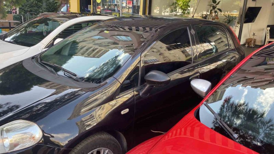 Antalya'da otomobil içerisindeki magandaların silahından çıkan saçmalar oto galerisindeki 2 otomobile isabet etti.