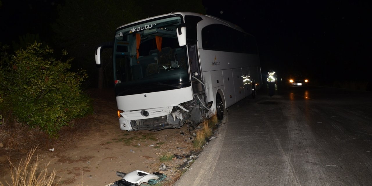 Antalya'da Tur Otobüsü İle Otomobilin Çarpıştığı Kazada 2 Kişi Yaralandı