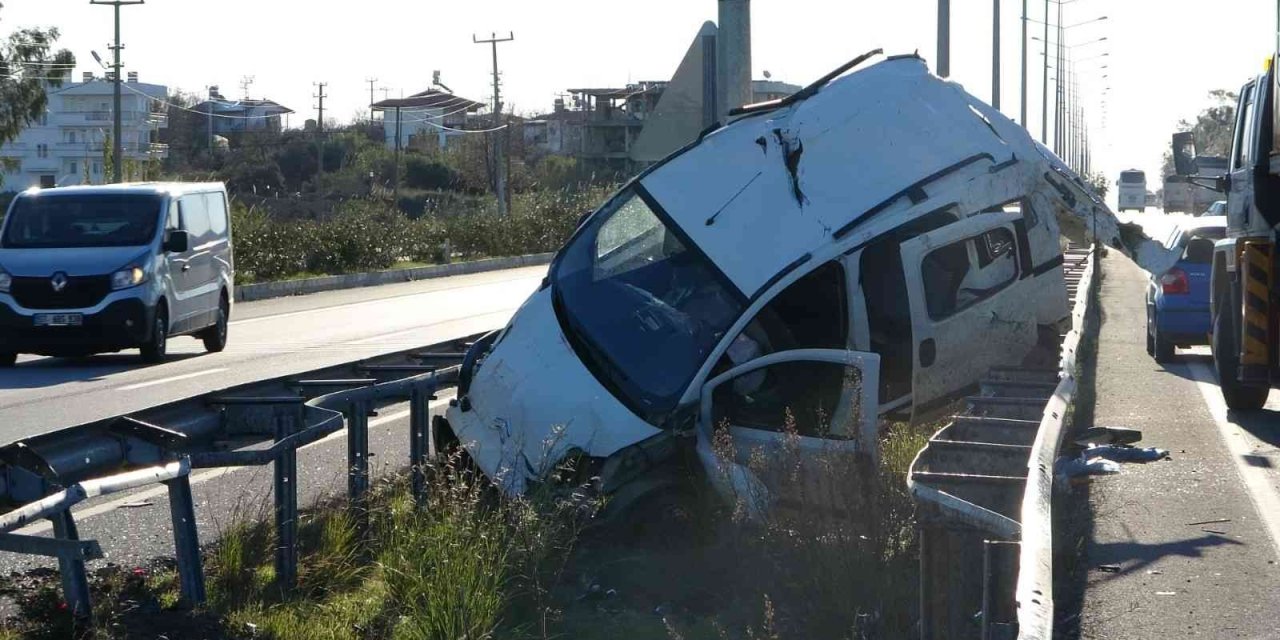 Hafif Ticari Araç Önce Bariyerlere Ardından Aydınlatma Direğine Çarptı: 4 Yaralı