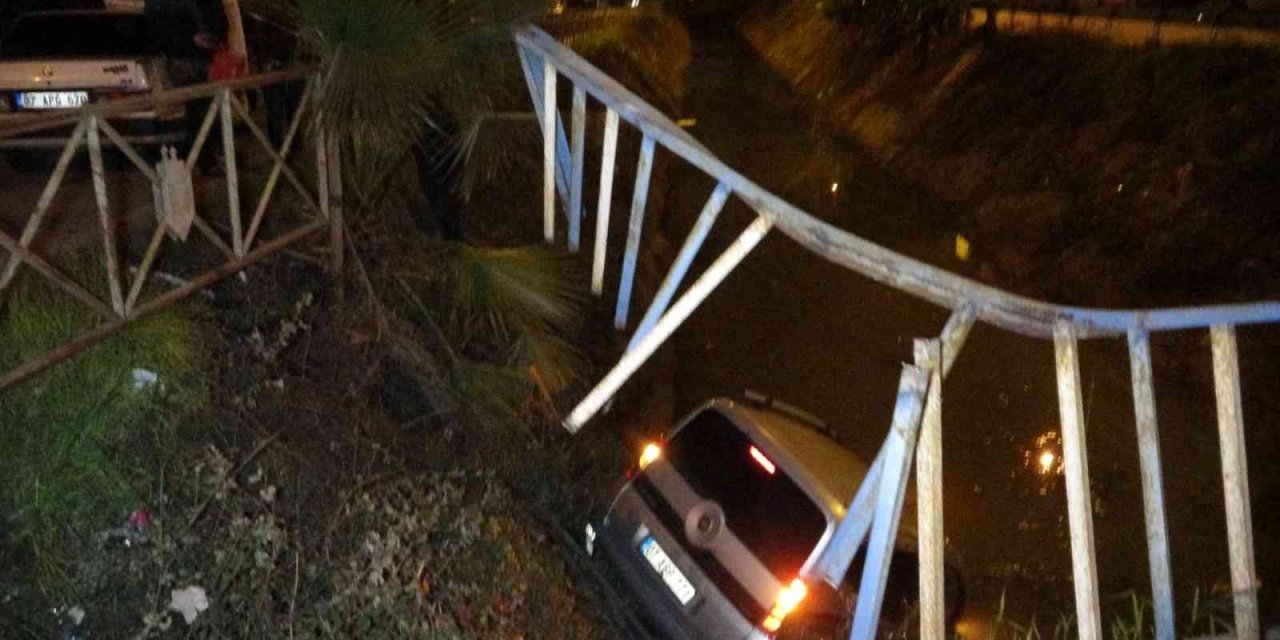 Otomobille Çarpışan Ticari Araç Korkulukları Parçalayıp Kanala Uçtu