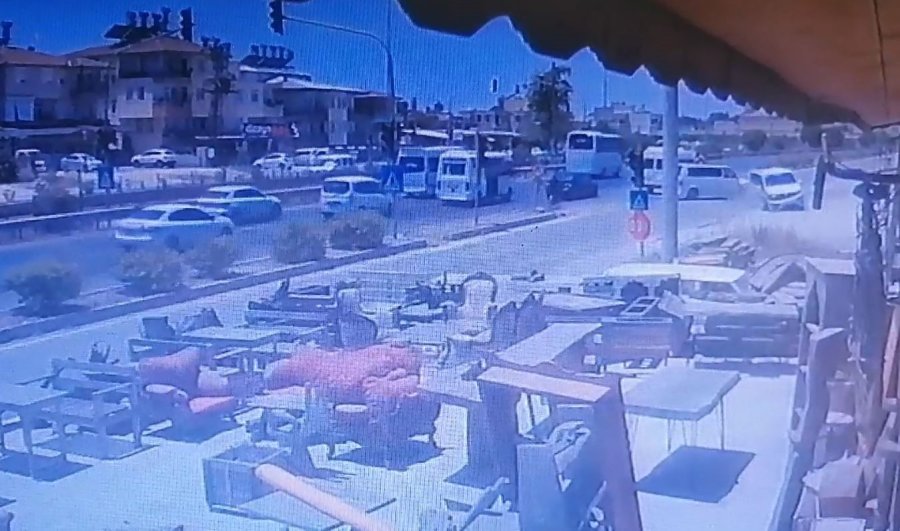 Kaza; Manavgat-Antalya D-400 Karayolu'nda meydana geldi. Alınan bilgiye göre; Kadir İpekli'nin kullandığı 35 TEK 03 plakalı Volkswagen Transporter marka tur minibüsü, Tahir Bozkurt'un kullandığı 07 TB 620 plakalı aynı marka model tur minibüsü ile çarpıştı. Araçlarda büyük maddi hasarın oluştuğu kazada kimsenin burnu kanamazken, bir minibüs çarpışmanın şiddetiyle yoldan çıkarak, yol kenarında ahşap ev yapan marangoz ustasının üzerine geldi. Durumun farkına varan marangoz ustası kaçarak kurtuldu. İş yerinin önünde çalıştığı sırada kazanın meydana geldiğini belirten marangoz ustası, "Bir anda araçlardan birisi üzerime doğru geldi. Kaçarak canımı kurtardım" diye konuştu. Kaza anları güvenlik kamerası tarafından kaydedildi.