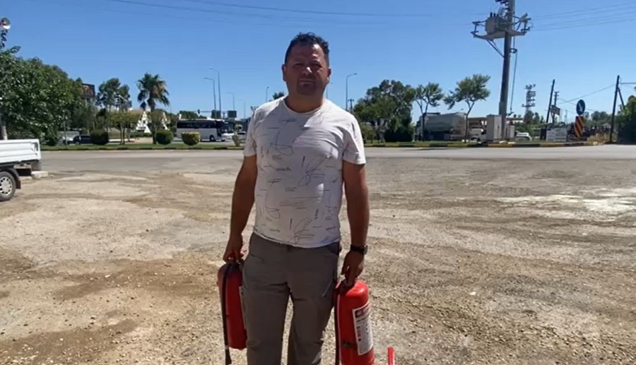 Olay anında yangın tüpleri ile alevlere müdahale eden Mehmet Altınkurt, "Cuma namazından çıktıktan sonra iş yerime geldim. Baktım bir hareketlilik var. İlk önce anlayamadım ne olduğunu ama sonra fark ettim ki bir vatandaşın aracı yanıyor. Bizim de işlerimiz plastik ürünler üzerinde olduğu için her zaman güvenlik açısından yangın tüpü bulundururuz. Aklıma geldi ve yangın tüpleriyle yangına müdahale ettim. Araç benimmiş değilmiş hiç önemsemedim. Mahalle arasında olduğu için daha büyük bir tehlike oluşturabileceğini düşündüm. Müdahale ettim canım pahasına. Vatandaşlık görevimi yaptım. Allaha şükür zararsız bir şekilde kurtardık aracımızı. Arkadaşlar yangın tüplerini bana ulaştırma da zorluk çektirdiler. Dükkanda devamlı ben durduğum için tarif ettim onlara. Çevrede bulunan esnaf arkadaşlarda yardımcı oldular. Onlarında yangın tüplerini kullandık. Yangın tüplerinin kimisi dolu kimisi boştu. Yangın esnasında bir panik oldu. O anda aracın tüplü olduğunu duydum. Mahalle arasında büyük bir felakete yol açabilir diye panik olduk. Allah'a şükür zararsız bir şekilde kurtardık. Biraz daha duyarlı olmamız gerekiyor. Evimizde, iş yerimizde, aracımızda illa ki bir yangın tüpü olması lazım. Eğer yangın tüpümüz olmasaydı itfaiye gelene kadar belki araç tamamen yanardı. Belki de araçtaki tüp patlar ve çevreye büyük bir zarar verebilirdi. Allaha şükür böyle bir şey olmadı. Mutluyum, vatandaşlık görevi yaptım. Allah razı yardımcı olanlardan" şeklinde konuştu.