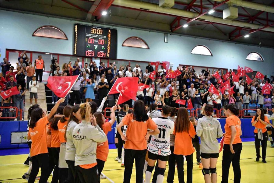 Antalya'yı Avrupa'da temsil eden tek takım olan Konyaaltı Belediye Spor Kulübü Kadın Hentbol Takımı, tarihinde ilk kez katıldığı Avrupa kupalarında bir üst tura yükseldi. EHF Avrupa Kupası ikinci turunda Yunanistan'ın A.E.S.H Pylea takımı ile iki maç oynayan Mavi Kelebekler, geçtiğimiz Cuma günü sahadan 4 farklı galibiyetle ayrılmıştı. Rövanş karşılaşmasında yine Akdeniz Üniversitesi Mavi Salon'da mücadele eden iki ekipten gülen taraf yine Konyaaltı oldu. İlk maça nazaran daha baskılı bir oyun oynayan Mavi Kelebekler, ilk yarısını da 15-8 gibi ezici bir skorla önde bitirdiği karşılaşmayı 34-23 kazanarak bir üst tura adını yazdırdı. İlk maçta olduğu gibi ellerinde Türk bayraklarıyla salonu dolduran hentbolseverler karşılaşmayı, bitiş düdüğüne kadar coşkuyla takip etti.