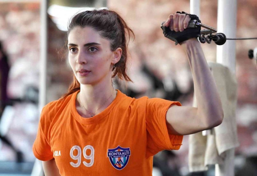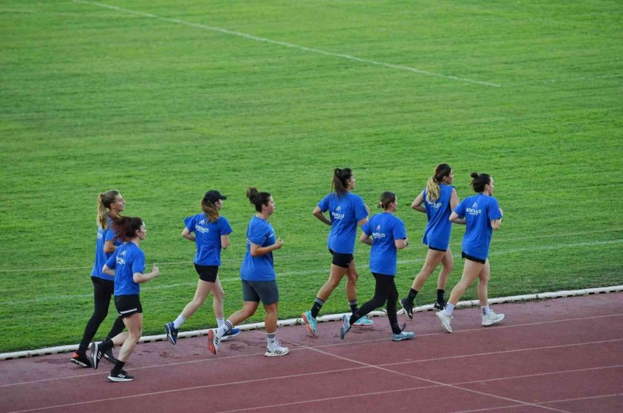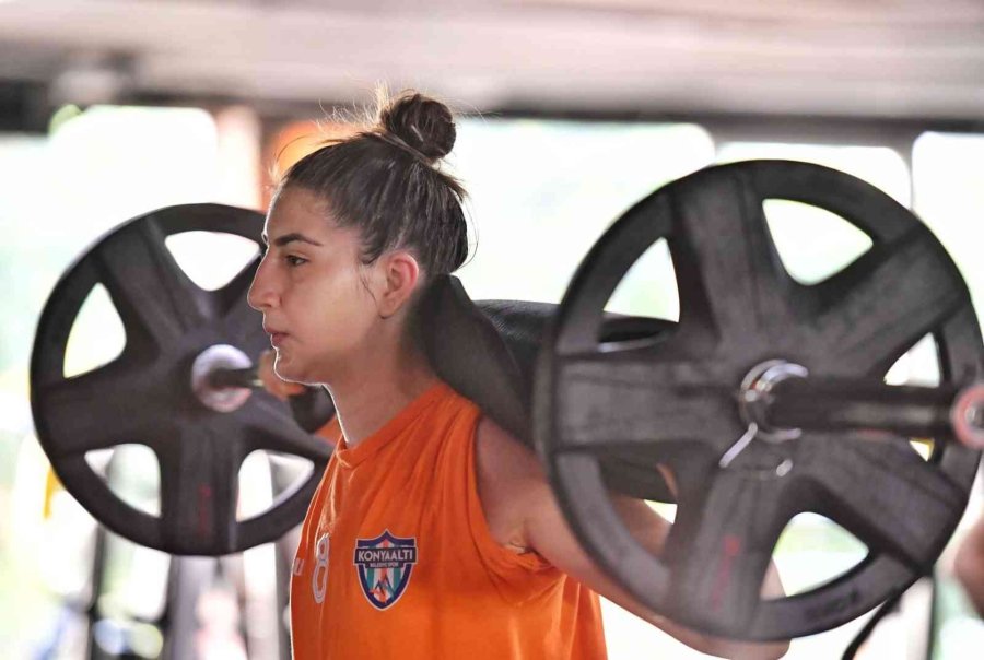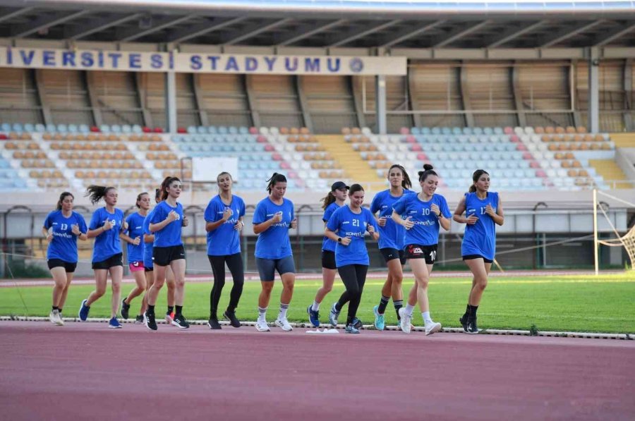 Hentbol Kadınlar Süper Ligi'nde mücadele eden Konyaaltı Belediyespor Kulübü oyuncuları, günde çift idmanla yeni sezona iddialı hazırlanıyor.
