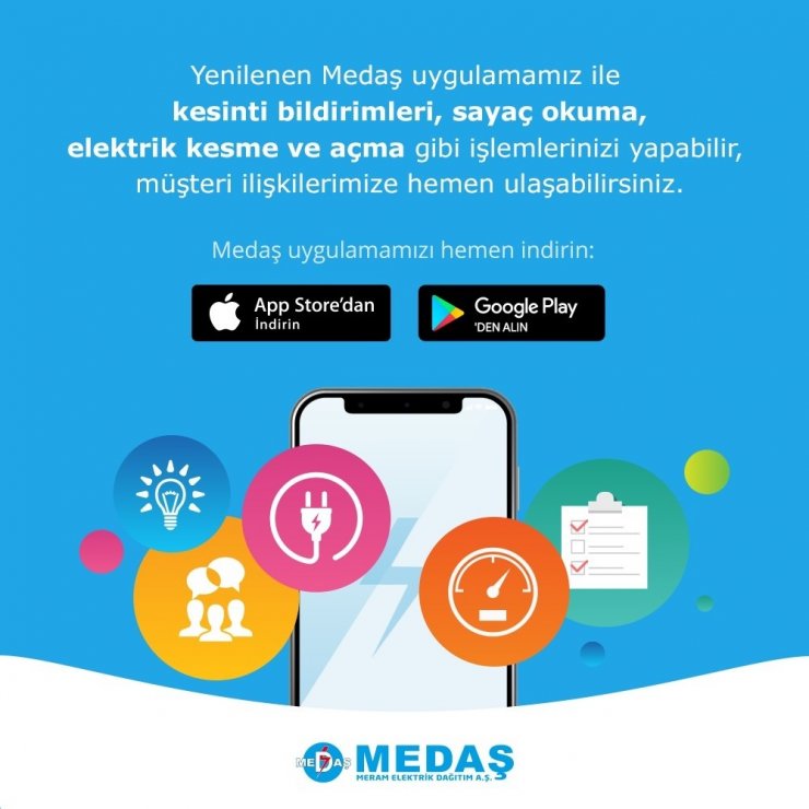 Tüketicilere kolaylık sağlamak için başlatılan Medaş 186 mobil uygulaması ile kullanıcılar çağrı merkezini aramadan, "Müşteri İlişkileri" bölümünden tüm istek, öneri ve ihbar bildirimlerini anlık olarak iletebiliyor. iOS ve Android işletim sistemine sahip cep telefonlarında kullanılabilen uygulama sayesinde kullanıcılar, planlı kesintiler, anlık kesintiler, açma-kesme sayaç işlemleri ve kaçak ihbarı ile ilgili bilgilere rahatlıkla ulaşabiliyor ve aynı zamanda konum bildirimi sağlayarak çok kolay bir şekilde arıza kaydı oluşturabiliyor. Kullanıcılar sistemde kayıtlı adresleri, o an bulundukları bölge veya farklı bir adres için elektrik kesintisi, aydınlatma, arıza kaydı konusunda kayıt oluşturabiliyor. Mobil cihazlardan oluşturulan kayıtlar, anında MEDAŞ saha ekiplerine iletilerek, taleplerin hızlı bir şekilde giderilmesi sağlanıyor.