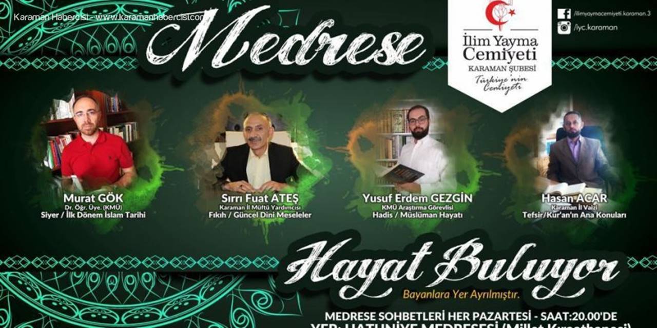Türkiye'nin cemiyeti İlim Yayma Cemiyeti Karaman Şubesi’ nin düzenlemiş olduğu Medrese söyleşileri, kaldığı yerden devam ediyor.