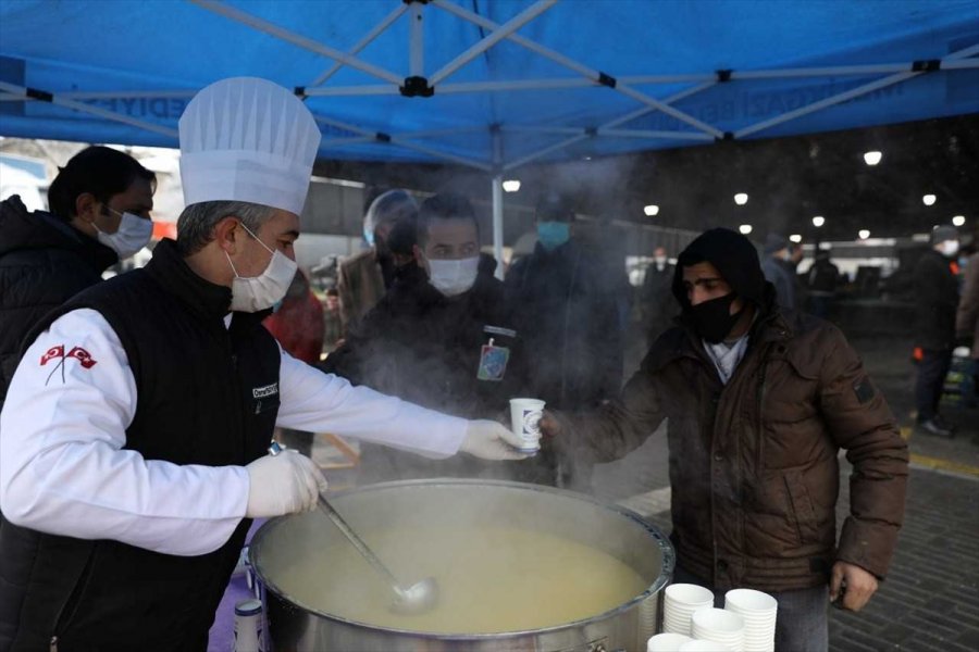 Belediyeden yapılan yazılı açıklamaya göre, belediye ekipleri, Hürriyet Mahallesi'ndeki kapalı pazar yerindeki esnafa sabahın erken saatlerinde sıcak çorba ikram etti.