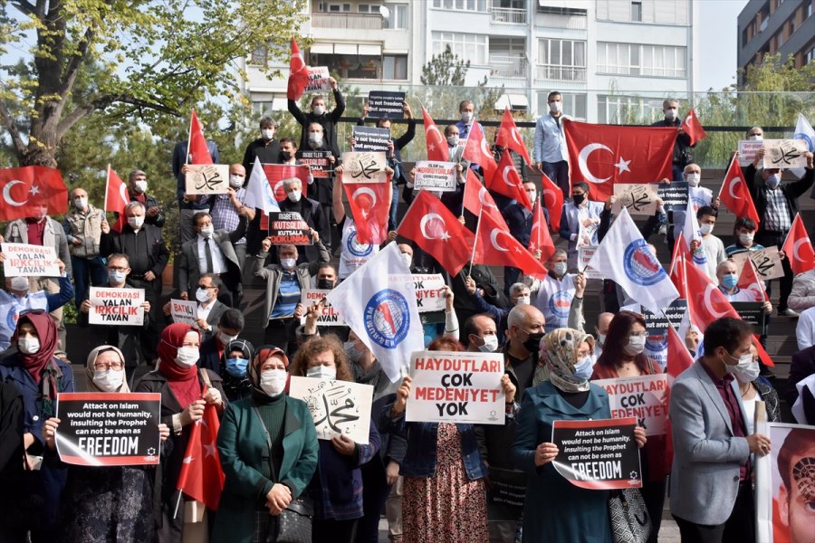 Konfederasyonun İl Temsilcisi Muammer Karaman, grup adına yaptığı açıklamada, Macron'un son dönemde "cinnete esir politikalarına" yenisini ekleyerek, insanlığa rahmet olarak gönderilen Hazreti Muhammed'e ilişkin sözde karikatürlere fikir özgürlüğü adına sahip çıkmasını ve Müslümanları aşağılamasını telin ettiklerini söyledi.