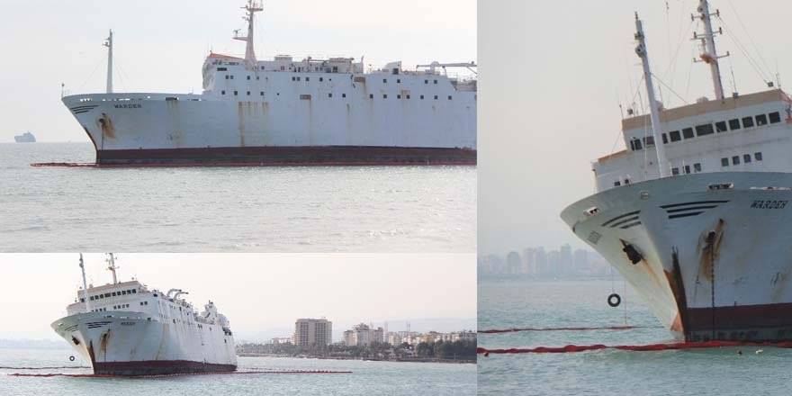 Mersin'de Karaya Oturan Geminin Çevresine Bariyer Çekildi