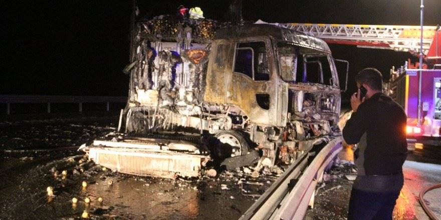 Mut-Karaman Karayolunda Yanan TIR Demir Yığınına Döndü