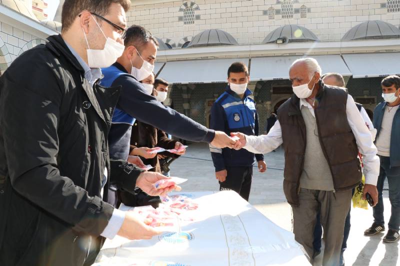 Mersin Büyükşehir Ekipleri, Cuma Namazı Çıkışı Maske Dağıttı