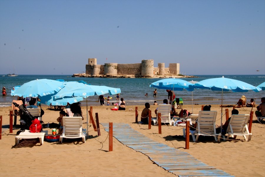 UNESCO Dünya Miras Geçici Listesi'ndeki Korykos Antik Kenti'nin parçası olan Erdemli ilçesindeki Kızkalesi, yeni tip koronavirüs (Kovid-19) tedbirleri eşliğinde tatilcilere ev sahipliği yaptı.