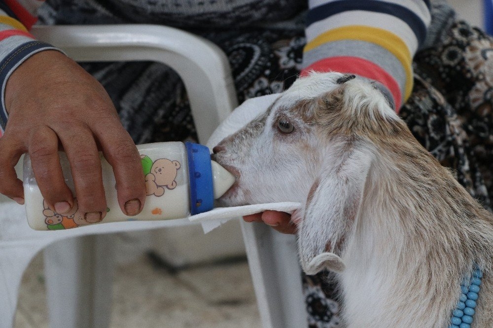 Mersin'de Annesi Ölen Keçiyi Bebekleri Gibi Besliyorlar