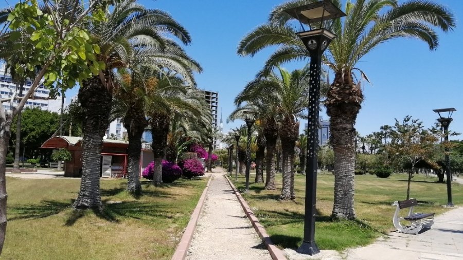 Normal günlerde Mersinlilerin akınına uğrayan Atatürk Parkı'da boş görüntüsüyle dikkat çekerken, parkta, baharın müjdecisi olan çiçekler renk cümbüşü oluşturdu.