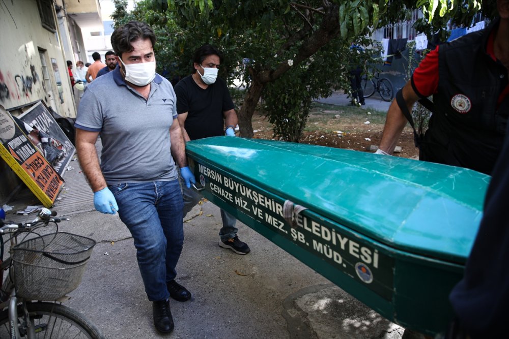 Olay yeri inceleme ekiplerinin çalışmasının ardından cenaze nakil aracına taşınan kadının naaşı, Adana Adli Tıp Kurumuna götürüldü.