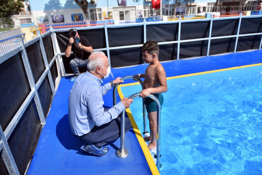 Mersin'de Çocuklar Okullardaki Seyyar Havuzlarda Eğlenerek Yüzme Öğreniyor