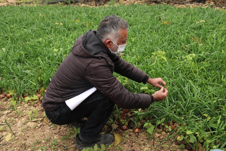 Soğan yetiştirici Hüseyin Yıldız, şiddetli yağmurun ardından yağan dolunun ürünlerine zarar verdiğini belirtti.