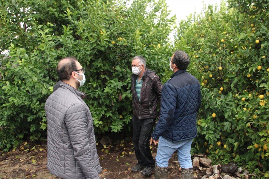Mersin'in Erdemli ilçesinde, dün etkili olan kuvvetli yağış, fırtına ve doludan etkilenen tarım arazilerinde hasar tespit çalışması yapılıyor.
