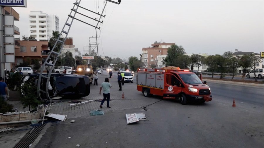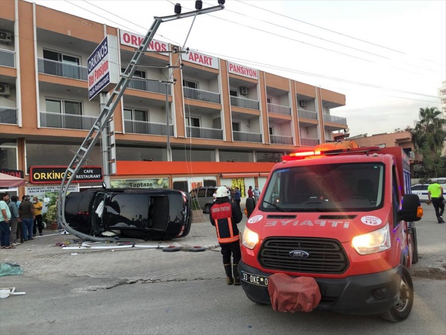 Mersin'de Elektrik Direğine Çarpan Otomobilin Sürücüsü Yaralandı