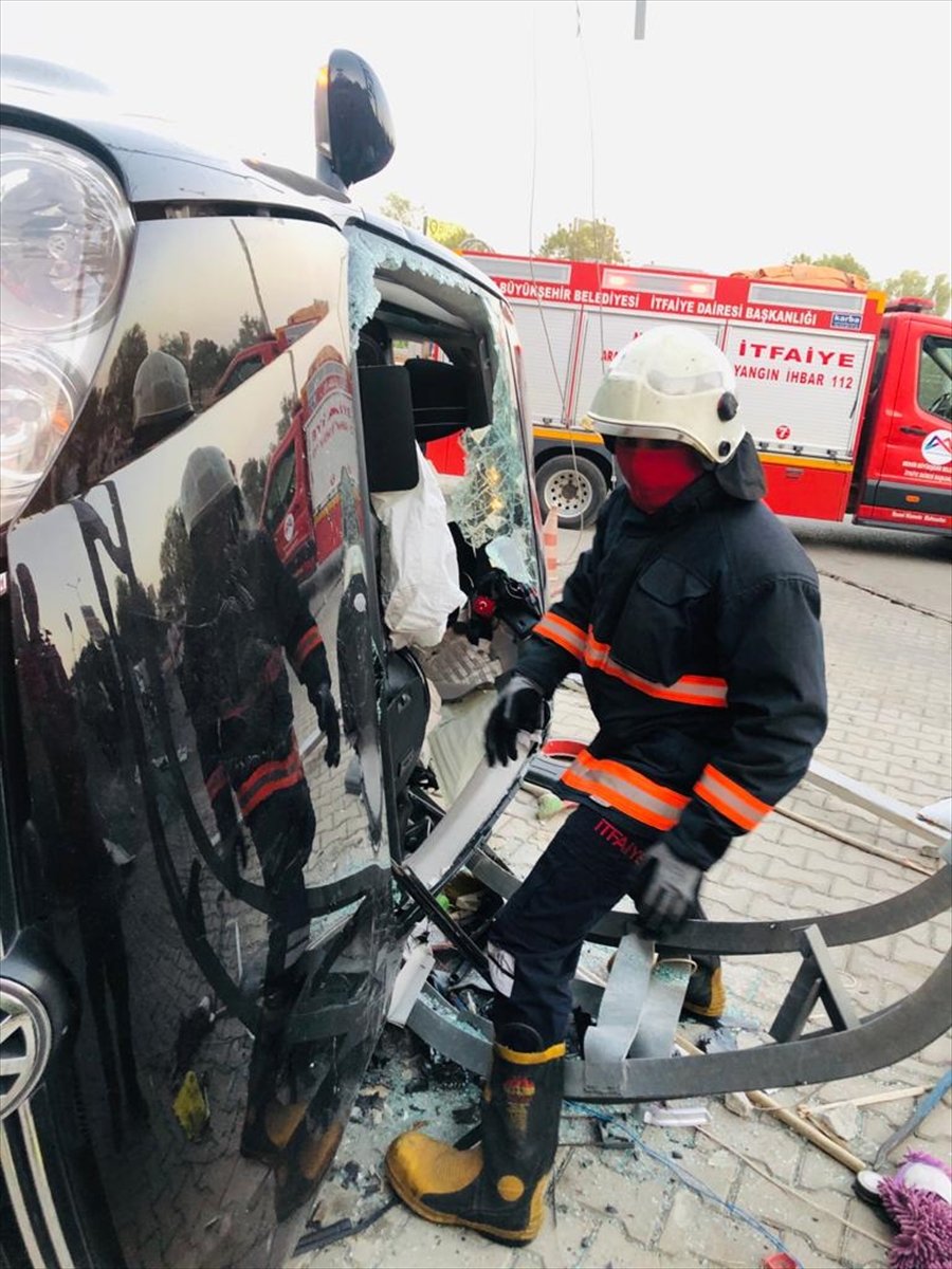 Sürücü, sıkıştığı otomobilden kaza yerine sevk edilen itfaiye ekiplerinin çalışmasıyla çıkartıldı.
