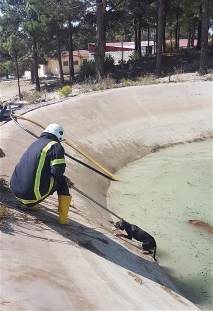 Mersin'in Gülnar ilçesinde, girdikleri orman yangınları için kullanılan yangın havuzunda çamura saplanan iki köpek itfaiye ekiplerince kurtarıldı.