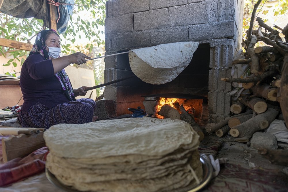 Mersin'de kadınların odun ateşinde pişirdiği yufkalar ile ekşi mayalı ekmekler, kentin farklı noktalarında satışa sunuldu.