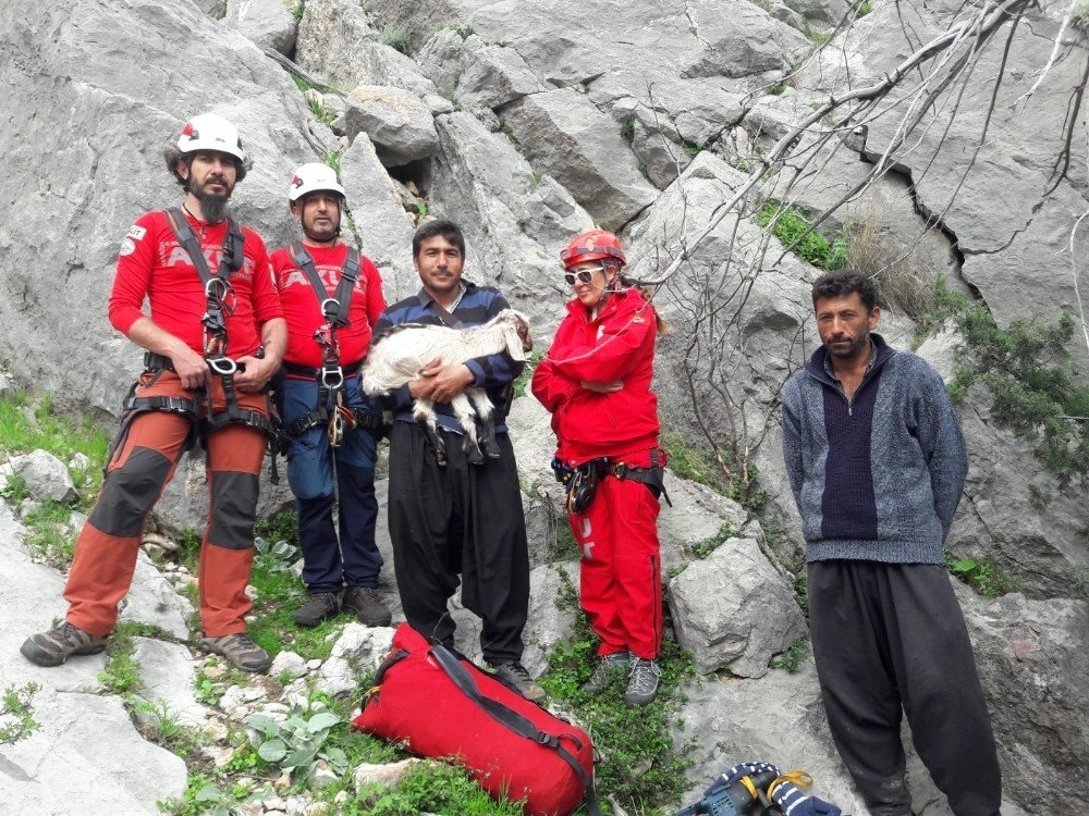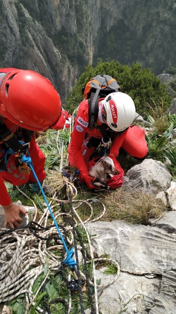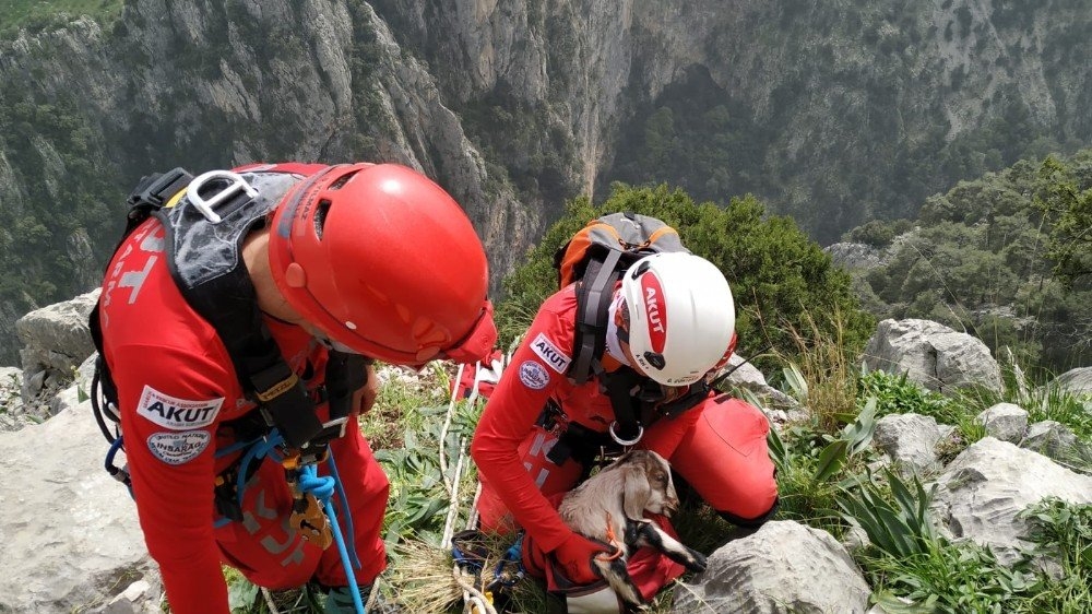 Mersin'de Kayalıklarda Mahsur Kalan 3 Keçi, 6 Saatlik Operasyonla Kurtar