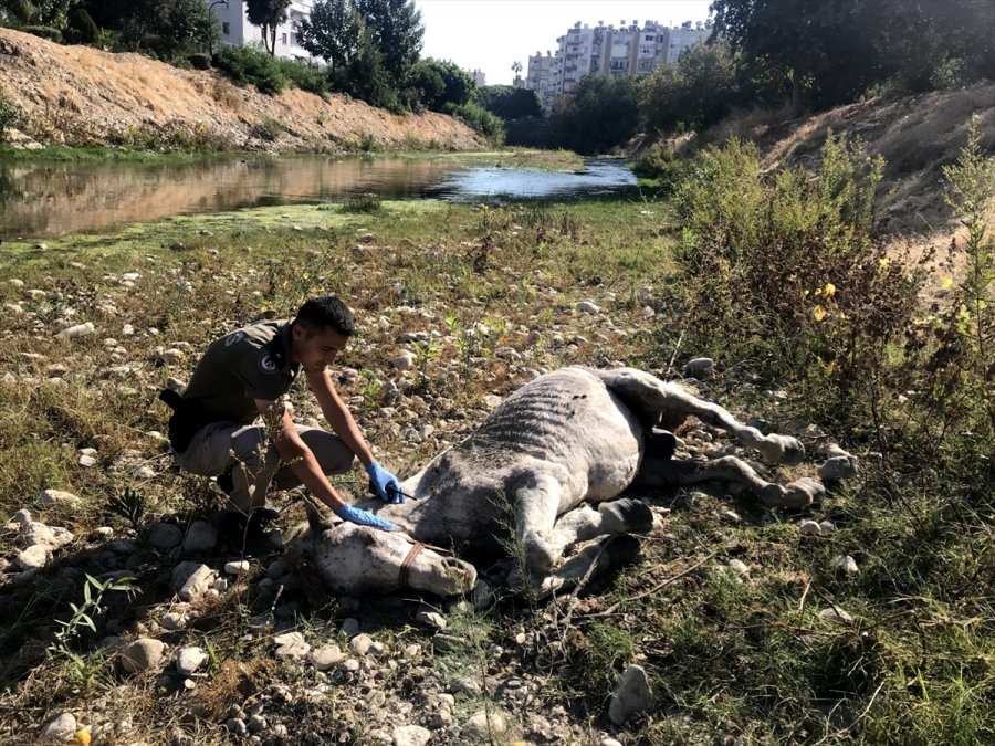 Mersin'de, dere yatağına bağlanmış ve ölüme terk edilmiş halde bulunan hasta 3 at, tedavileri için hayvanat bahçesine götürüldü.