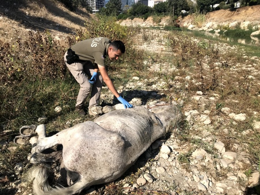 İl Emniyet Müdürlüğünden yapılan açıklamaya göre, Çevre, Doğa ve Hayvanları Koruma Şubesi polisleri, Pirireis Mahallesi'nde dere yatağında 3 atın bağlandığını tespit etti.