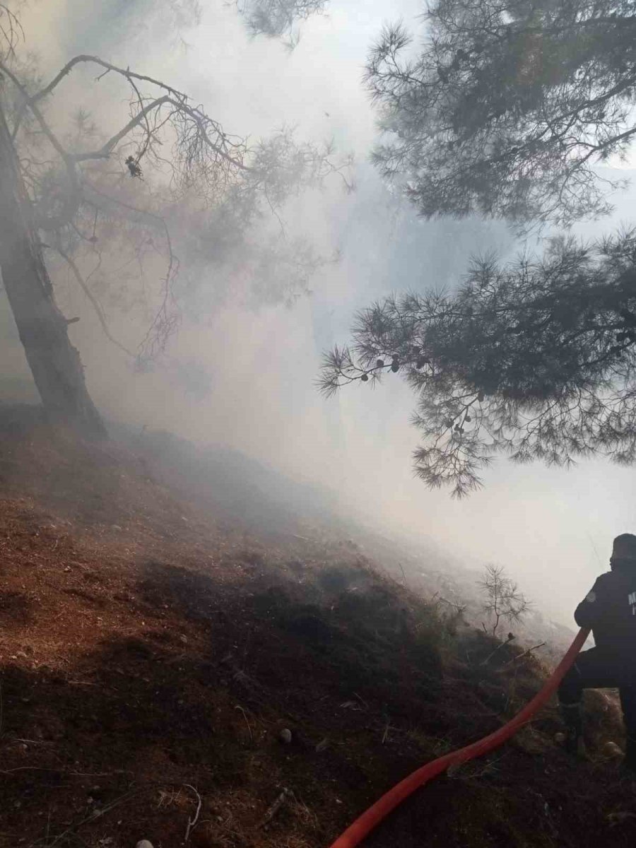 Edinilen bilgiye göre, ilçeye bağlı Boğazpınar Mahallesi yakınlarında ormanlık alanda yangın çıktı.